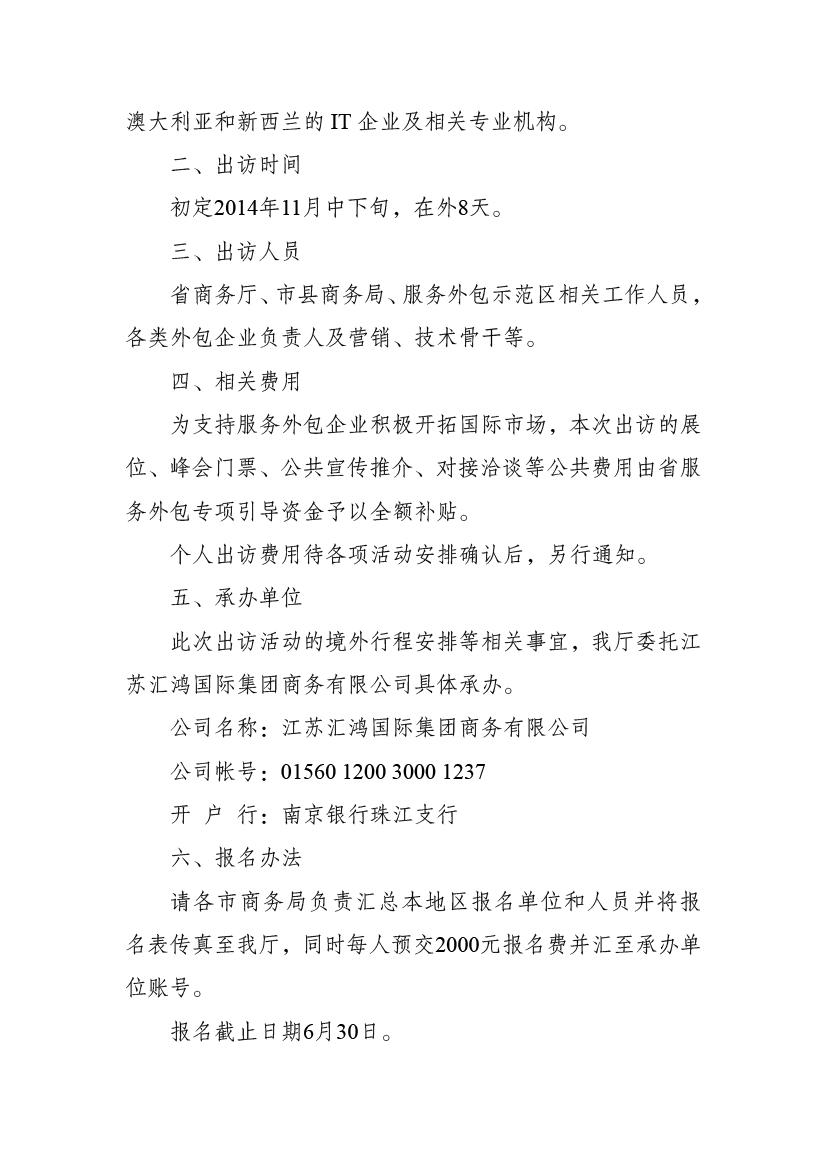 關(guān)于組織江蘇服務(wù)外包代表團(tuán)赴澳大利亞、新西蘭參加專業(yè)展會并進(jìn)行對接交流活動的通知